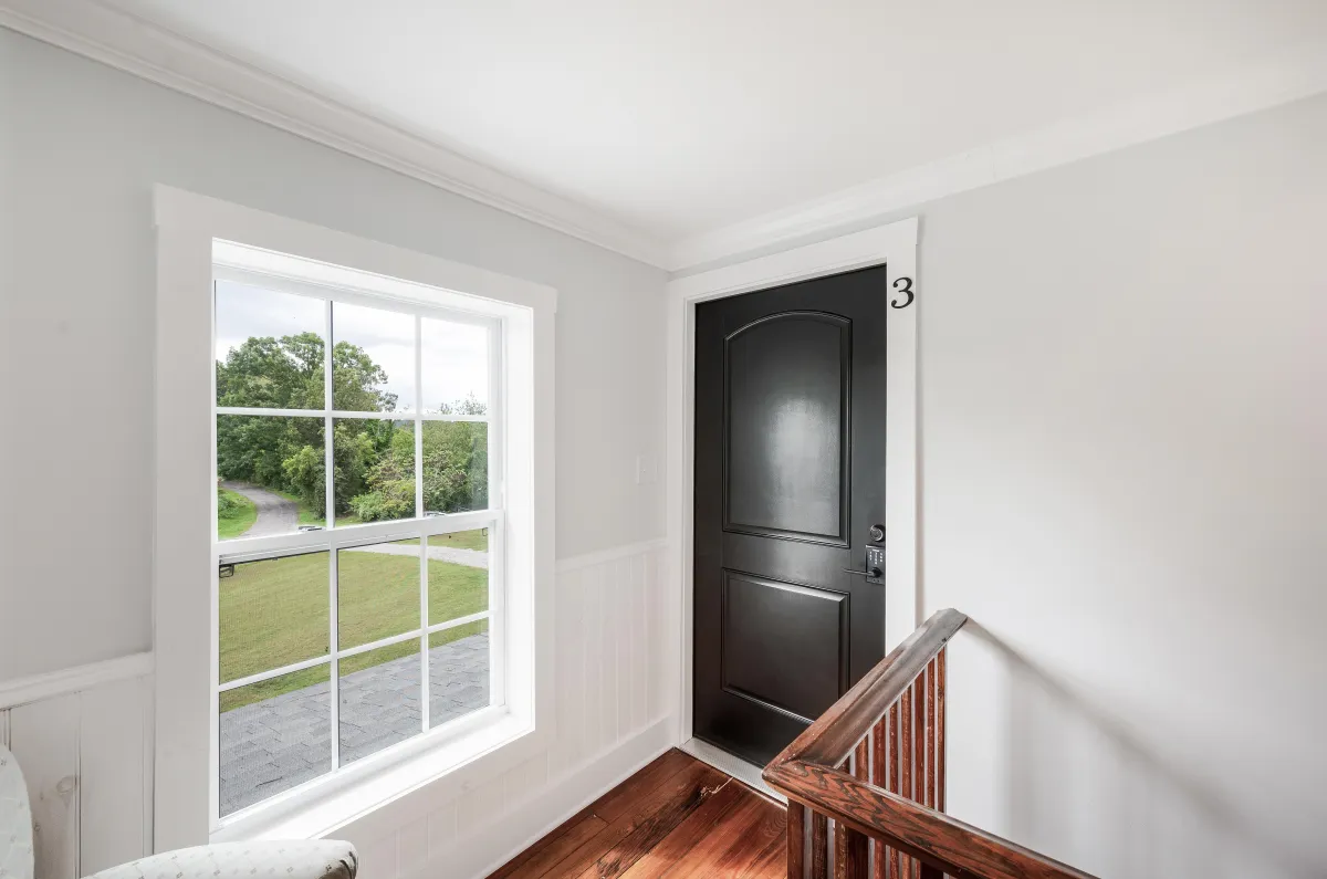 Private 30-foot balcony overlooking the farm—perfect for morning coffee or sunset views