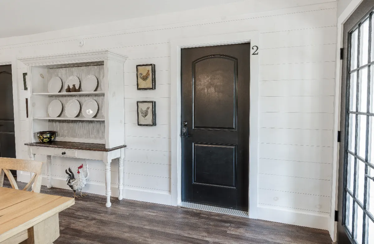 At Peaks of Otter Farm, guests can enjoy more than just their private suite—our shared spaces are designed for comfort, connection, and a true taste of country living. The fully equipped kitchen features a refrigerator, stove, microwave, Keurig coffee maker, toaster, and all the essentials, along with a farmhouse table perfect for meals or planning your day. The cozy living room invites you to relax with comfortable seating and a large smart TV, while the spacious outdoor porches offer serene views of rolling pastures and a front-row seat to our friendly animals.